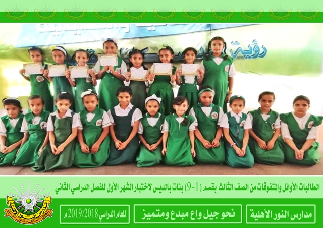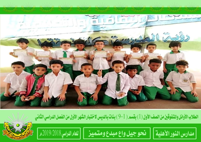 تكريم الطلاب والطالبات الأوائل والمتفوقون لاختبار الشهر الأول من الفصل الدراسي الثاني من هذا العام وكذلك المثاليون والمثاليات بقسم ( 1-9 ) بنات بالديس . رؤية المدرسة نحوجيل واع مبدع ومتميز