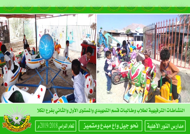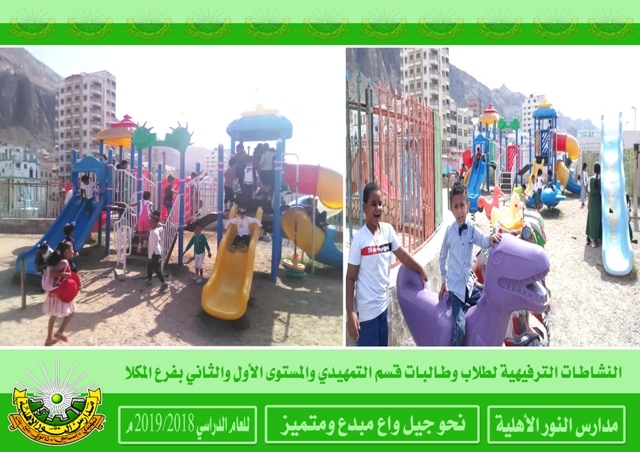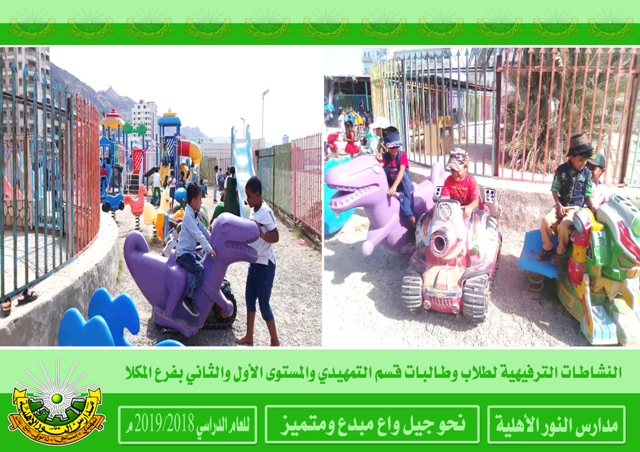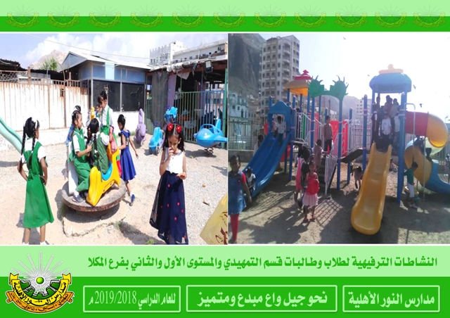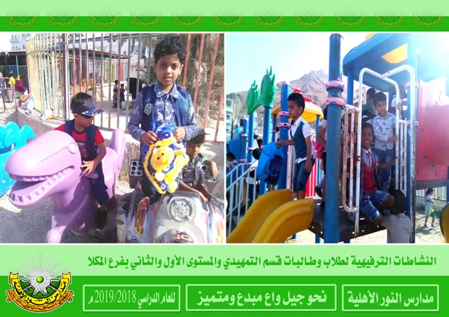 النشاطات الترفيهية بقسم ( تمهيدي - أساسي ) بفرع المكلا لأطفال الروضة والمستوى الأول والثاني بنين وبنات .