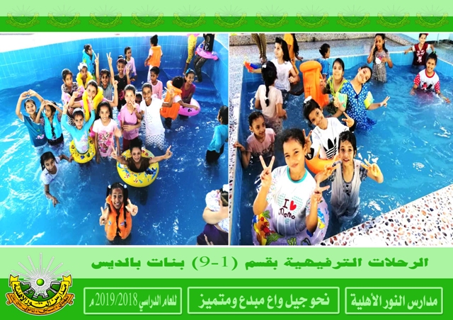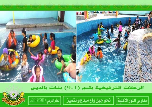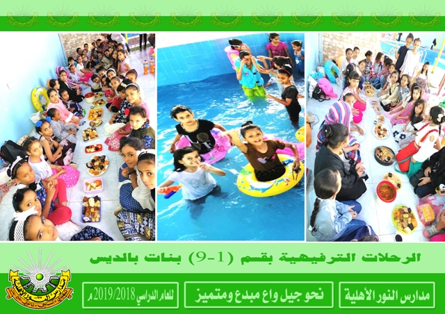 اختتمت يوم الأربعاء من الأسبوع الماضي بقسم ( 1-9 ) بنات بالديس برنامج الرحلات الترفيهية والتي تعتبر كمتنفس للطالبات قبيل الاختبارات النهائية وقد استمتع الطالبات بهذه الرحلات والتي تخللتها بعض النشاطات الترفيهية والمسلية . تأتي هذه الرحلات ضمن خطة النشاطات الترفيهية التي تقيمها المدرسة للفصل الدراسي الثاني من هذا العام . رؤية المدرسة نحو جيل واع مبدع ومتميز