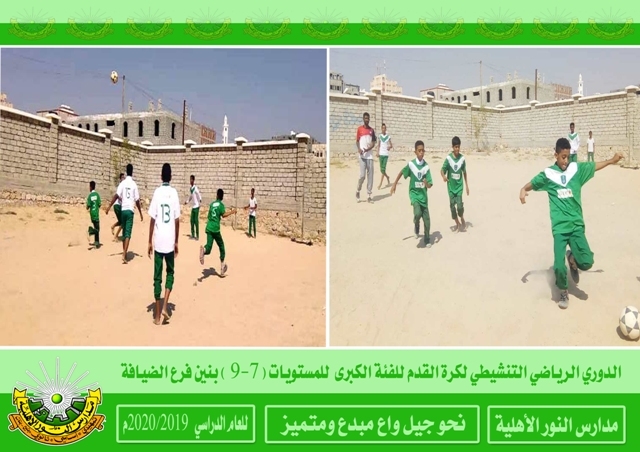 التنشيطي لكرة القدم للفئة الكبرى ( 7-9) بنين حيث جمعت المباراة الافتتاحية كل من فريق الصف السابع (أ) وفريق الصف الثامن (أ) وانتهت المباراة لصالح فريق الصف الثامن (أ) بهدفين مقابل هدف بعد مباراة تنافسية ود كان نجم هذه المباراة الطالب علي السعدي من الصف السابع (أ) وستتواصل فعاليات الدوري للفئة الكبرى خلال الأيام القادمة .