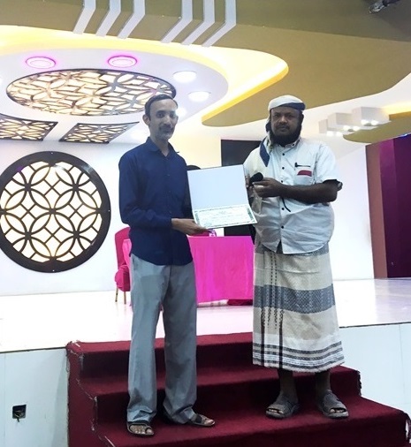 وفي نهاية المحاضرة قدمت مدارس النور الأهلية ممثلة بمشرفها العام الأستاذ جمال بامسعود شهادة شكر وتقدير للدكتور عبدالله السقاف سائلاً الله عز وجل يوفقه لما فيه الخير .