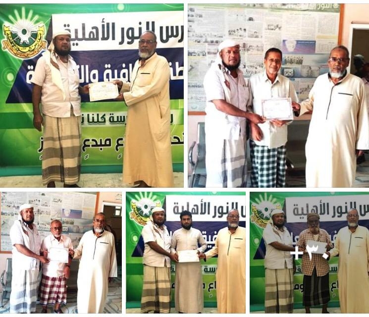 كرمت مدارس النور الأهلية ممثلة بالمشرف العام الأستاذ جمال بامسعود والمدير العام الأستاذ سعيد بامسعود إداريي الإدارة العامة وإداريي الأقسام التعليمية والعمال والحراس بجميع فروع وأقسام المدرسة وذلك لما قدموه من جهود مضنية لانجاح العملية التربوية والتعليمية بالمدرسة كان ذلك صباح يوم الخميس الماضي بالقاعة الكبرى للمدرسة بالديس .