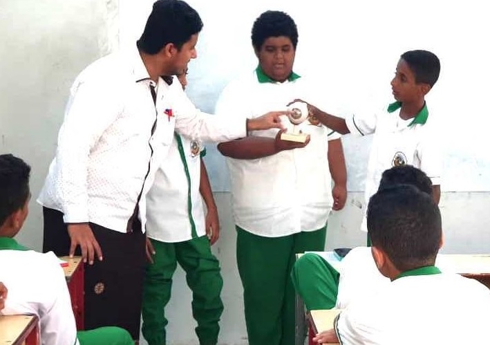 في حصة تعليمية عملية قام الأستاذ سعيد بامخير معلم مادة العلوم بفرع الضيافة بشرح درس ( كيف ترى العين الأشياء ) للصف الثامن ويهدف الدرس لتعريف الطلاب بمكونات العين والتعرف على طبقاتها وعلى تكون الصورة التي تراها العين بالإضافة إلى التطرق إلى مشكلات العين من قصر وطول النظر وكيفية معالجة هذه المشكلات عن طريق العدسات الصناعية .