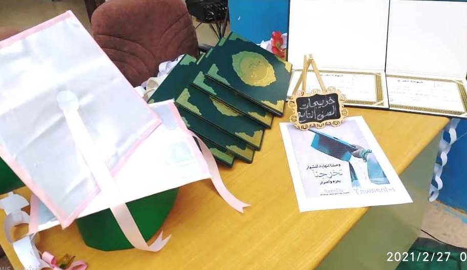 أقيم يوم السبت ما قبل الماضي بقسم ( تمهيدي – أساسي ) بنات بفرع الضيافة حفل تكريم طالبات الصف التاسع الدفعة الاولى لعام 2019-2020 م .