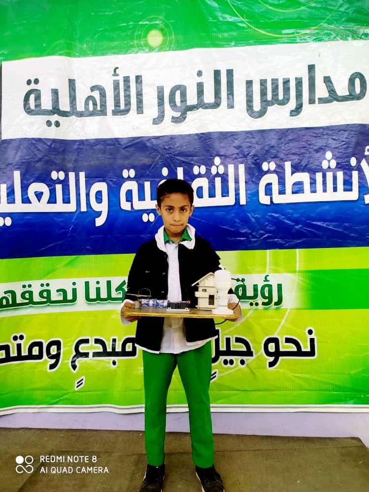 أحمد صالح بشهر من الصف الثالث وذلك بقيامه بعمل دائرة كهربائية ويأتي هذا التكريم من إدارة المدرسة للطالب أحمد تحفيزاً وتشجيعاً له متمنية له المزيد من الابداع والتميز .