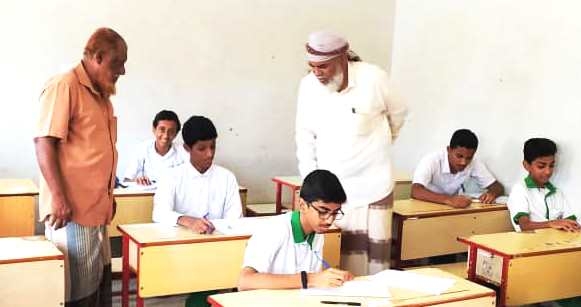 تفقد صباح يومنا هذا السبت مشرف الاختبارات بمكتب التربية والتعليم بالمديرية الأستاذ صالح بن سمير سير الاختبارات النهائية من العام الحالي بقسم ( 4-9 ) بنين بفرع الضيافة وقد بدأ زيارته التفقدية بغرفة الكنترول والتي أطلع من خلالها على كيفية توزيع المراقبين وأوراق الاختبارات على القاعات وكذلك كشوفات تحضير الطلاب كما واصل المشرف زيارته بالدخول إلى قاعات الاختبارات متمنياً لجميع الطلاب التوفيق والنجاح .