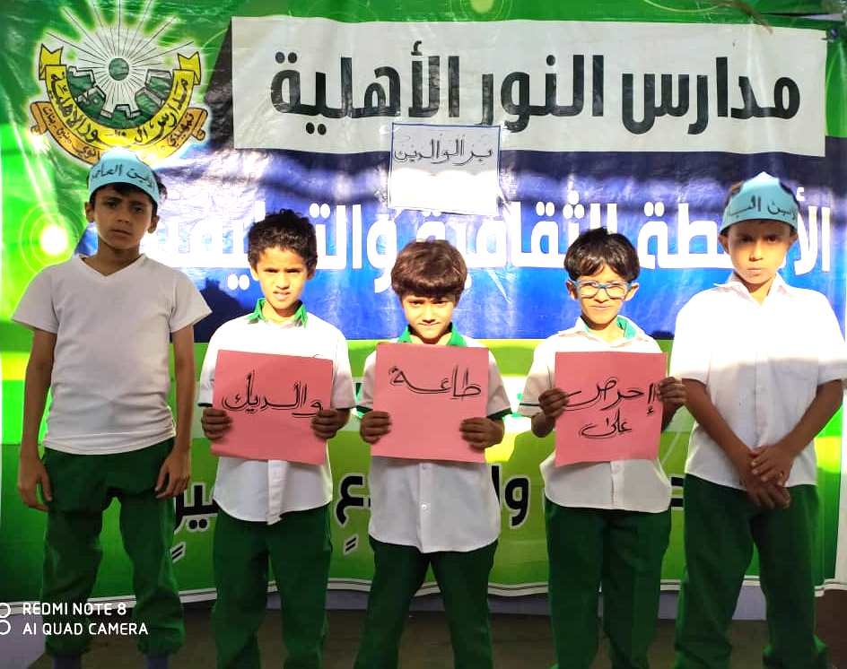 اختتم صباح يوم الخميس من الأسبوع الماضي بفرع المدرسة بالمكلا فعاليات الأسبوع التوجيهي لتلاميذ وتلميذات المستويات من ( 1-3 ) والذي حمل عنوان ( بر الوالدين ) حيث اشتمل الأسبوع التوجيهي على العديد من الفعاليات كالإذاعة المدرسية الهادفة والمحاضرات التوجيهية والملصقات التوعوية .