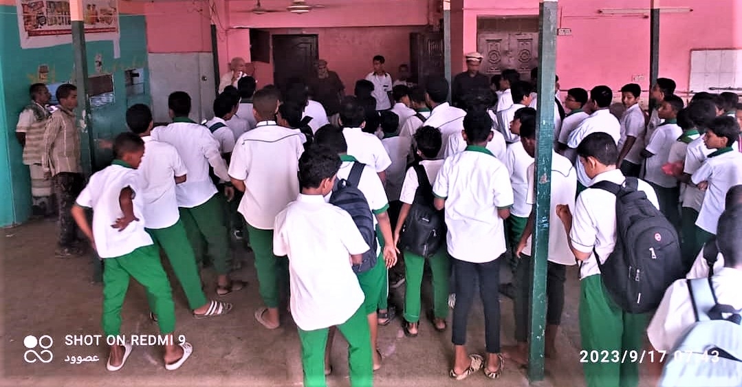 أقام تلاميذ الصف السابع بفرع الديس صباح يوم أمس الأحد طابوراً صباحياً مميزاً اشتمل على العديد من الفقرات الهادفة وخلال الطابور ألقى الوكيل الأستاذ عمر خرد كلمة توجيهية حث فيها التلاميذ والطلاب على بذل المزيد من الجد والاجتهاد ومراجعة الدروس أول بأول كما حثهم على الانضباط والهدوء داخل غرف الدرس .