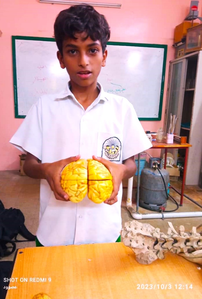 ضمن الحصص العملية والنظرية التي ينفذها معلمو مادة العلوم بفرع الديس أجرى أستاذ مادة العلوم مطلق النوب حصة عملية نظرية لتلاميذ الصف السادس (2) بمختبر المدرسة في درس ( أجزاء الجهاز العصبي ) وقد تفاعل التلاميذ أثناء سير الحصة العملية واعجبوا بما شاهدوه من أجزاء الجهاز العصبي الملموسة وقد استفاد التلاميذ من هذه الحصة العملية .