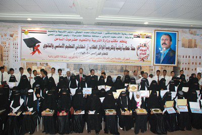 والتعليم وقد حضر هذا التكريم وزير التربية والتعليم وكذا وزير التعليم العالي وعدد من الشخصيات . فقد تحصل الطالب عبدالرحمن عدنان عبود ثابت على حصوله على المركز السادس في امتحان الشهادة الأساسية الصف التاسع للعام المنصرم 2010/2011م بمجموع (694) ونسبة ( 99,14) .والطالبة شيخة فهد سهل وحدين على حصولها على المركز العاشر بمجموع (690) ونسبة ( 98,75) . كما كرمت الطالبة إيمان عمر باعقبة التي حازت على المرتبة الثامنة على المحافظة في القسم الأدبي بنسبة مقدارها 93,75 فهنيئا لطلابنا وطالباتنا هذا النجاح والتفوق .