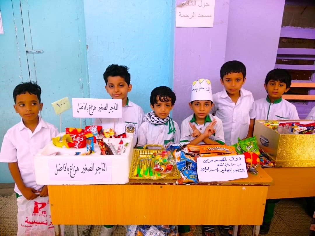 خلق الله سبحانه وتعالى الناس كي يصنعوا مجتمعاً يعمل وينتج ، هذا المجتمع أساسه المعاملات بين الجميع، ولذا وجدت المصالح التي تربط الناس ببعضهم ، ومن أهم المعاملات اليومية المتداولة بين الناس معاملة البيع الشراء ومن هذا المنطلق ولغرس حب الكسب الحلال والبيع والشراء في نفوس التلاميذ أقامت مدارس النور بفرع المكلا ( القصر ) صباح يوم أمس الأول نشاطاً لتلاميذ وتلميذات المستوى ( التمهيدي – الخامس ) تحت عنوان ( التاجر الصغير ) وقد تمثل النشاط بأن يحضر التلاميذ والتلميذات بعض المنتجات والمأكولات المنزلية أو شراء بعض السلع من السوق وعرضها وبيعها أثناء إقامة النشاط وقد لاق النشاط تفاعلاً كبيراً من قبل التلاميذ والتلميذات واتسم النشاط بالبهجة والفرح التي غمرت الجميع كما تتقدم إدارة مدارس النور بفرع المكلا بالشكر والتقدير لجميع أولياء الأمور لتفاعلهم في نجاح هذا النشاط .