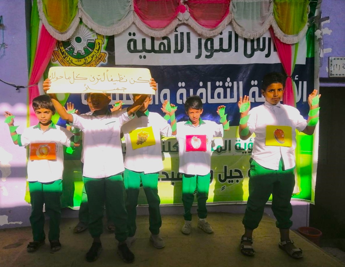 تماشياً مع اليوم العالمي للبيئة والذي يشرف عليه مكتب وزارة التربية والتعليم بساحل حضرموت اختتمت صباح يوم الخميس من الأسبوع الماضي فعاليات أسبوع النظافة والبيئة بمدارس النور الأهلية لفرع المكلا ( القصر ) لتلاميذ وتلميذات الفئة الصغرى ( تمهيدي – رابع ) وقد اشتملت الفعالية على الكلمات التوجيهية والمشاهد والأناشيد والملصقات المعبرة وكذلك عروض تلفزيونية مرئية كما اشتملت الفاعلية مشاركة التلاميذ في تنظيف ساحة المدرسة وتهدف هذه الفعالية إلى غرس حب النظافة في قلوب التلاميذ والتلميذات وقد لاقت الفعالية تفاعل كبير من قبل التلاميذ والتلميذات .