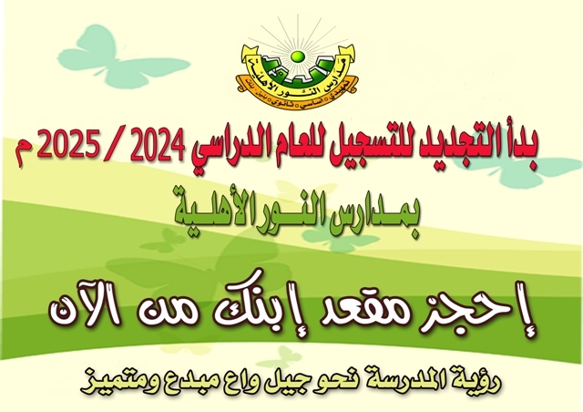 | | |  اعلان التجديد للتسجيل للعام القادم 2025/2024 م