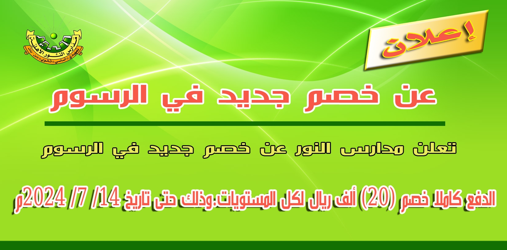 ???????? تعلن مدارس النور عن خصم جديد في الرسوم :