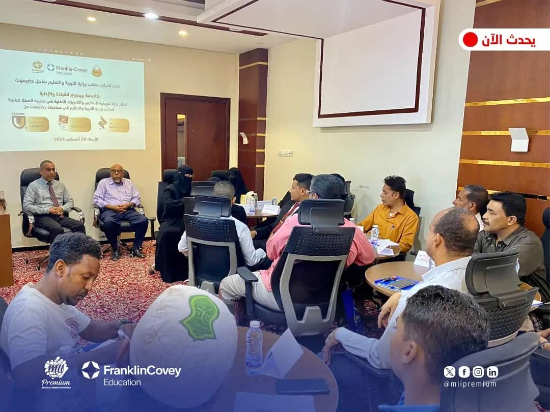 الإعلام المدرسي 29 أغسطس 2024م أقيمت ندوة نظمتها أكاديمية بريميوم للقيادة والإدارة، صباح يوم أمس الأربعاء الموافق 28أغسطس 2024م ، وهي ندوة حول دبلوم الكفاءة الذاتية ودورة العادات السبع ومنصة LeaderU. ويعد دبلوم الكفاءة الذاتية الذي تنفذه الأكاديمية برنامج تدريبي يهدف إلى تطوير المهارات الشخصية للفرد لزيادة فعاليته في مختلف جوانب حياته، وكذا دورة العادات الـ7 التي تعتمد على كتاب "العادات الـ7 للناس الأكثر فعالية" للكاتب الدكتور ستيفن كوفي، تركز على تطوير سبع عادات تساعد الأفراد على تحقيق النجاح الشخصي والمهني. وقد حضرت الندوة الأستاذة هدى باقميش مديرة فرع مدارس النور بالمكلا ( القصر ) رؤيتنا : نحو جيل واع مبدع ومتميز ????ولمتابعة إعلانات وأخبار مدارس النور اﻷهلية ????�فيسبوك : www.fb.com/alnoor.schools.page ????�تلقرام : https://t.me/alnoorschools ????�انستقرام : https://www.instagram.com/alnoor.schools/ ????�يوتيوب : https://www.youtube.com/c/PrivateAlnoorSchool ????�الموقع الإلكتروني : www.alnoor-schools.com ???????? رابط أخبار وإعلانات مدارس النور الأهلية https://chat.whatsapp.com/JivOcgPTwVY3lob4JxjF0b