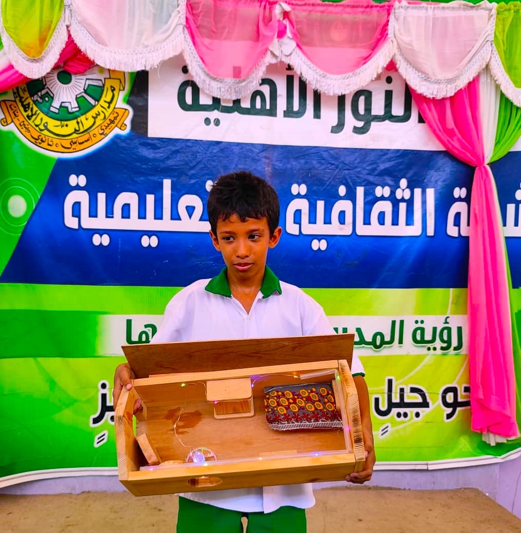انطلاقاً من هذا المبدأ فإن مدارس النور الأهلية تسعى لتحقيق ذلك من خلال رفع مستوى مهارات طلابها من خلال تشجيعهم وتوجيههم في تنمية وتطوير مهاراتهم وميولهم وقد أبدع الطالب علي نديم وحدين من الصف الخامس بفرع المدرسة بالمكلا في عمل غرفة نوم من الخشب وبهذا العمل طوَر الطالب علي نديم مهاراته في هذا الجانب ونتمنى له مزيدا من التقدم والإبداع .