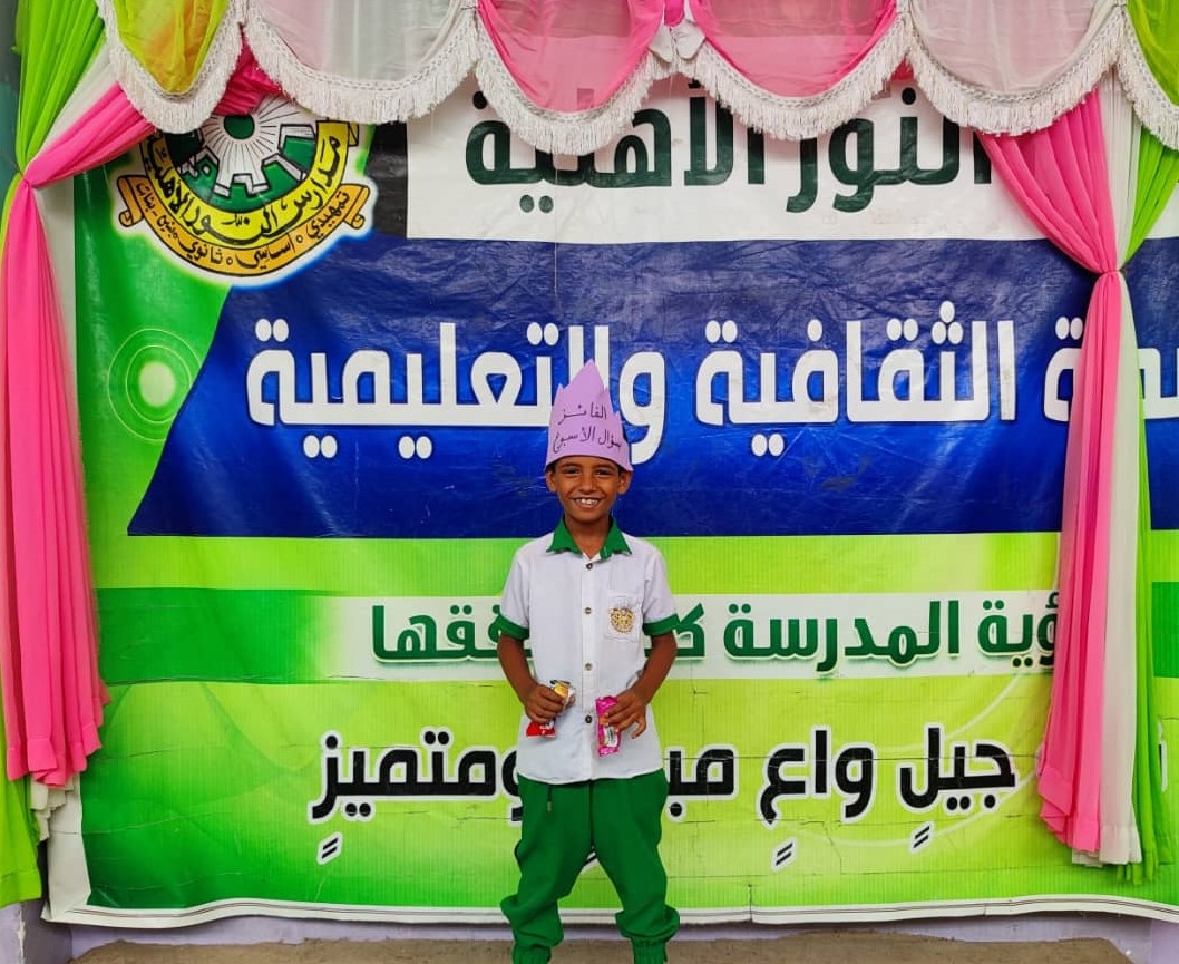 إدارة مدارس النور الأهلية بفرع المكلا ( القصر ) تكرم التلميذ راكان بامسعود من الصف الثالث لفوزه في مسابقة سؤال الأسبوع فمبارك له الفوز