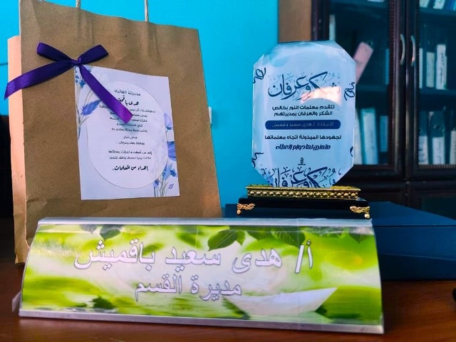بهذه العبارات الجميلة وفي حفل أقيم بهذه المناسبة كرم معلمات مدارس النور الأهلية بفرع المكلا ( القصر ) صباح يوم الأربعاء من الأسبوع الماضي مديرتهم الفاضلة الأستاذة هدى باقميش تقديراًلجهودها في إنجاح سير العملية التربوية والتعليمية بالفرع خلال الفترة المنصرمة وقد عبرت المديرة عن شكرها وسعادتها وامتنانها بهذه المفاجأة الرائعة التي لم تتوقعها فقد كان التكريم من أسعد لحظات حياتها مشيرة أن سر نجاحها هو بتكاتف وتعاون الجميع .