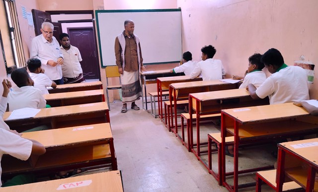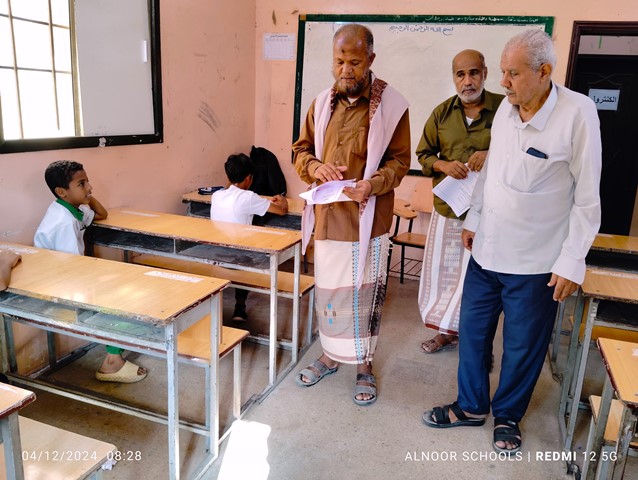 رافقه في الجولة الأستاذ عمر خرد، وكيل المدرسة، والأستاذ علي المرشدي، مختص التطوير والعلاقات والإعلام.
