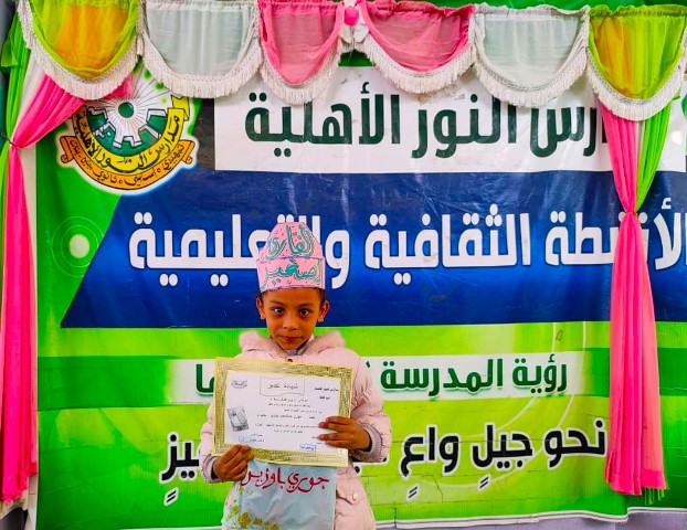 كما كرمت إدارة المدرسة صباح يوم الثلاثاء الموافق 7/1/2025م التلميذة جوري عبدالناصر باوزير من الصف الأول لحصولها على لقب القارئ الصغير والتلميذة أنيسة هشام الحامد من الصف الثاني بلقب المنشد المبدع كذلك تم تكريم التلميذتان الفائزتان بسؤال الأسبوع وهن التلميذة نسيبة عبدالحكيم لرضي من الصف الخامس والتلميذة ماريا عوض العكبري من الصف الثالث فمبارك لهم هذا التكريم .