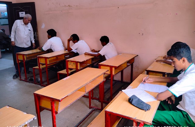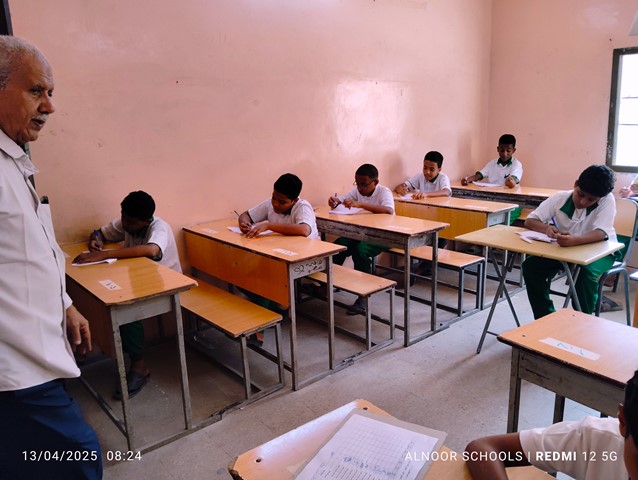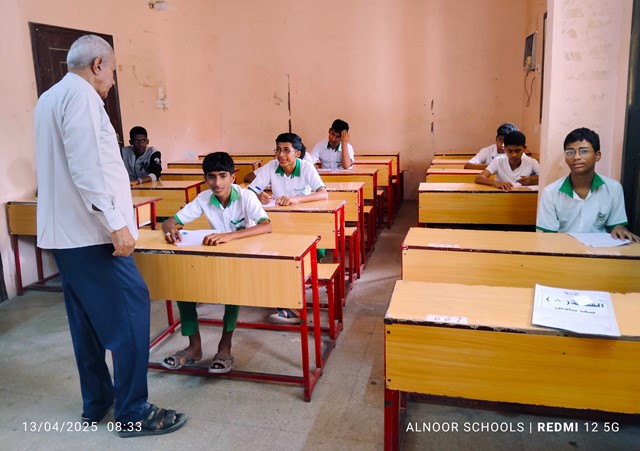 دشن الأستاذ عمر خرد وكيل مدارس النور الأهلية بالديس صباح يومنا هذا الأحد الاختبارات النهائية للعام الدراسي الجاري حيث طاف بقاعات الاختبارات وذلك للاطمئنان على الأجواء التي يؤدي فيها أبناؤنا الطلاب الاختبارات .