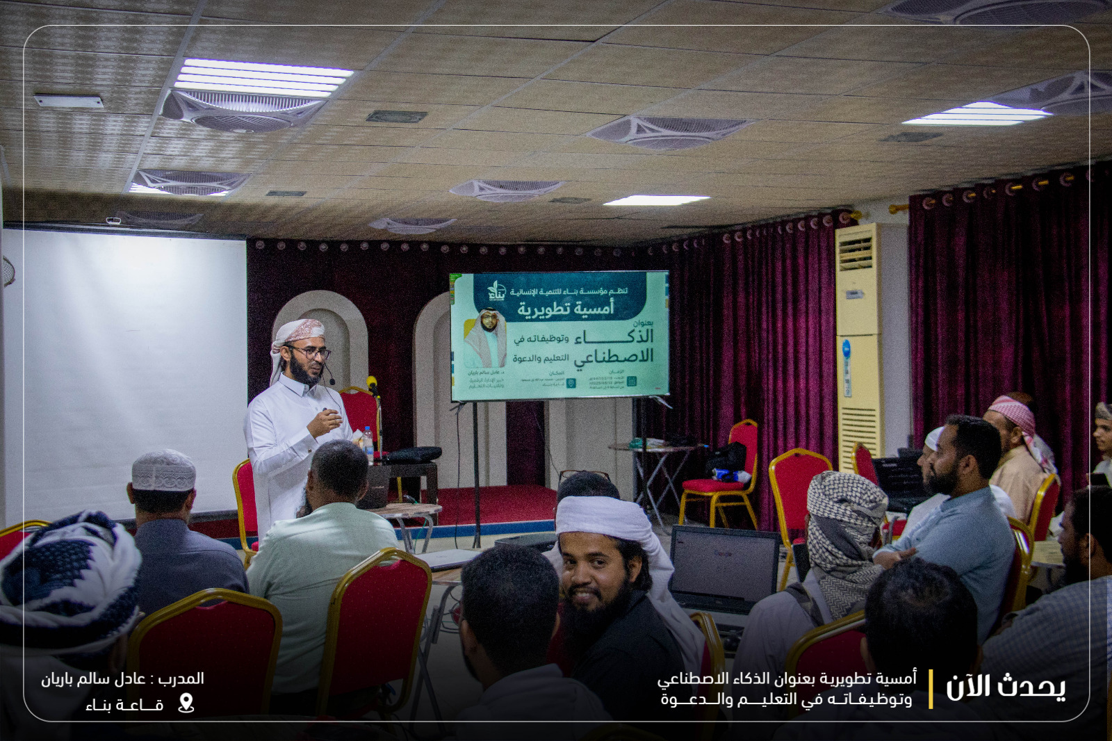 شارك الأستاذ جمال محمد بامسعود المدير العام لمدارس النور الأهلية في الدورة المتميزة التي أقيمت من قبل مؤسسة بناء للتنمية الإنسانية والتي حاضر فيها المدرب المتميز الدكتور عادل سالم باريان مساء يوم الأربعاء الموافق ١٢/ ٨ / ٢٥م حيث تطرق الدكتور المدرب إلى مفاهيم حول الذكاء الاصطناعي والمواقع المشهورة التي يتعامل الناس معها في هذا الجانب وفوائد الذكاء الاصطناعي وسهولة استخدامه وكيف يمكن أن يوظف في التعليم .