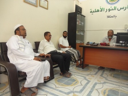 في اليوم السبت الموافق 19 / 1 / 2013 م زار مدارس النور الأهلية مشرف إمتحانات الفصل الدراسي الأول مندوباً عن إدارة التربية والتعليم الأستاذ / هاشم الحامد وذلك للإطلاع على سير الإمتحانات بالمدرسة مع مراعاة وجود التنظيم في القاعات وطريقة توزيع الطلاب والطالبات وما إلى ذلك من الأسس المطلوبة لإجراء الإمتحانات رافقه في الزيارة مدير عام المدرسة والمشرف بالمدرسة مسؤل قسم التوجيه بالمدرسة إضافة إلى مسؤل العلاقات والتنسيق بالمدرسة وقد أبدى المشرف إرتياحة لما شاهده من وجود المعايير المطلوب توافرها بالصفوف بالمدرسة .
