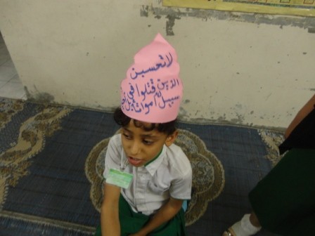 إن من أهدافنا التربوية في مدارس النور الأهلية أن نربي أبناءنا و بناتنا على الأخوة الإسلامية على مستوى الفرد و كذا على مستوى الجماعة و أيضاً على مستوى الوطن العربي خاصة , و كذا بث في نفوس الأبناء روح التفاؤل و الثقة بوعد الله عزوجل في النصر و التمكين للإسلام و المسلمين لقول الرسول صل الله عليه وسلم ] تفاءل بالخير تجده [ فإن مما يجري اليوم في الساحات العربية من قتل و تشريد لأبناء بلاد الشام و لأهل سوريا خاصة يحرك فينا الشعور بالنخوة العربية و المناصرة لأخواننا في سوريا فلأجل ذلك أقيمت صباح اليوم الخميس بتاريخ 23/05/1434هـ الموافق 04/04/2013م العديد من المحاضرات التوجيهية المناصرة لأهل سوريا و كذا حفلات إنشادية معبره عما يعانيه أبناؤنا من الأسى و الحزن تجاه ما يعانيه أخوانهم في سوريا في كل أقسام البنات ( تمهيدي + أساسي ) قسم (2-4) قسم (5-9) و قد شارك فيه جميع الطالبه و الطالبات تعبيراً عن مشاعر الإخوة تجاه إخوانهم في سوريا .
