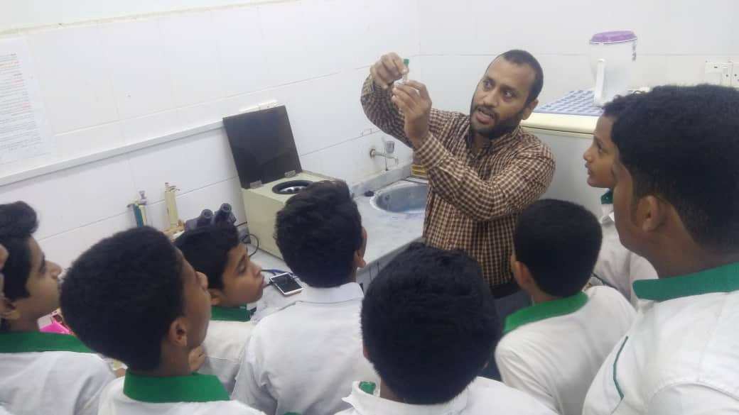 | | |  زار طلاب المستوى السابع بفرعي الديس والضيافه قسم العظام بمستشفى ابن سيناء العام حيث كان في استقبالهم مسؤول القسم الدكتور سالم باربيدي والذي أطلعهم على حالات المرضى وأشعة الكسور الخاصة بهم كما ألقى لهم كلمة توجيهية نبه فيها الطلاب من التهور بالسيارات أو الدراجات النارية وعواقبها الوخيمة والتي تؤدي الى الحوادث لا قدر الله وفي أثناء الكلمة تطرق بعض الطلاب لطرح بعض الأسئلة والإجابة عنها من قبل الدكتور سالم ومن جانبه ألقى الطالب عبدالرحيم بامشموس كلمة شكر فيها إدارة المستشفى وكذلك مسؤولي القسم وجميع الأطباء والممرضين وتم تسليم مسؤول القسم شهادة شكر وتقدير مقدمة من إدارة المدرسة لإدارة المستشفى وفي نفس السياق زار طلاب المستوى الأول ثانوي مختبرات الصحة المركزية والذي كان في استقبالهم الدكتور مهدي بازنبور مسؤول القسم والذي أطلعهم على أنواع الفحوصات المخبرية وكيفية التعامل معها وقد عبر الطلاب عن سعادتهم وارتياحهم الشديدين لدكاترة القسم لإطلاعهم على مثل هذه المعلومات المفيدة شاكرين إدارة المستشفى إتاحة لهم الفرصة لزيارة المختبرات ونجاح الزيارة وقد قدمت شهادة شكر وتقدير من إدارة المدرسة لإدارة مختبرات الصحة المركزية تسلمها الدكتور وليد البطاطي.