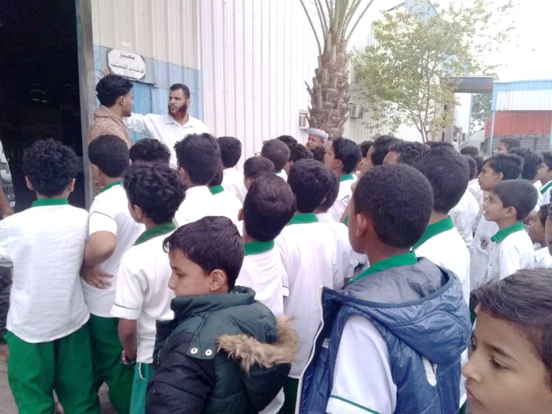 | | |  أقيمت صباح يوم الأحد من هذا الأسبوع الجاري زيارة تعليمية للمستوى الخامس بقسم ( تمهيدي - أساسي ) بنين بالديس إلى مجمع حضرموت الصناعي حيث كان في استقبالهم منسق زيارات المجمع الاخ صالح النوبي والذي رحب بالطلاب الزوار للمجمع وأعطى لهم نبدة تعريفة عن أقسام المجمع كما أعطى بعض التوجيهات والتعليمات والتي يجب التحلي بها عند زيارة المجمع وذلك للحفاظ على سلامتهم ثم تم اصطحاب الطلاب إلى مصنع الأغذية الخفيفة ( الطرزان - وبفك الباندا ) وكذلك مصنع الاسفنج وقد أعجب الطلاب بهذه الزيارة . تأتي هذه الزيارة ضمن برنامج الزيارات الثقافية والتعليمية للفصل الدراسي الأول من هذا العام . الإعلام التربوي بالمدرسة رؤيتنا : نحو جيل واع مبدع ومتميز