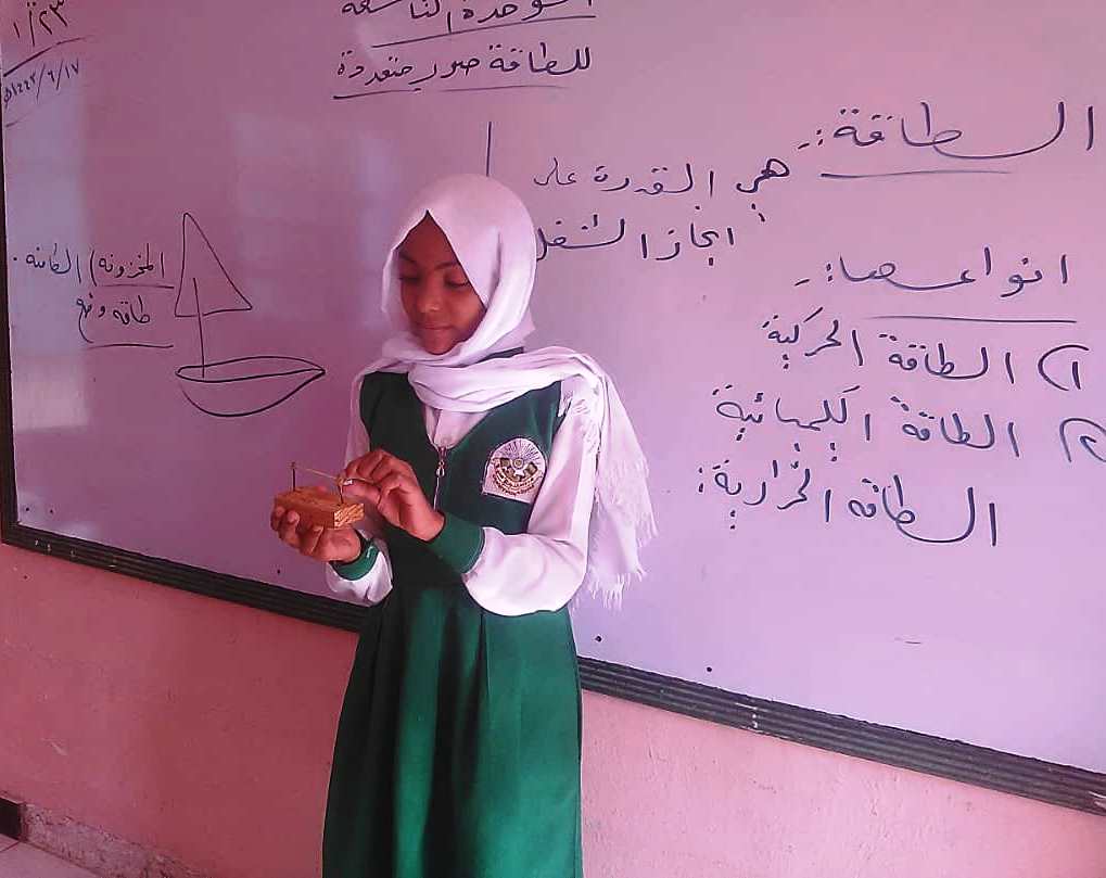 أجريت لطالبات الصف السادس بقسم ( 1-8 ) بفرع المكلا ( القصر ) تجربة علمية في مادة العلوم في درس ( للطاقة صور متعددة ) بإشراف معلمة المادة رشيدة الهندي .
