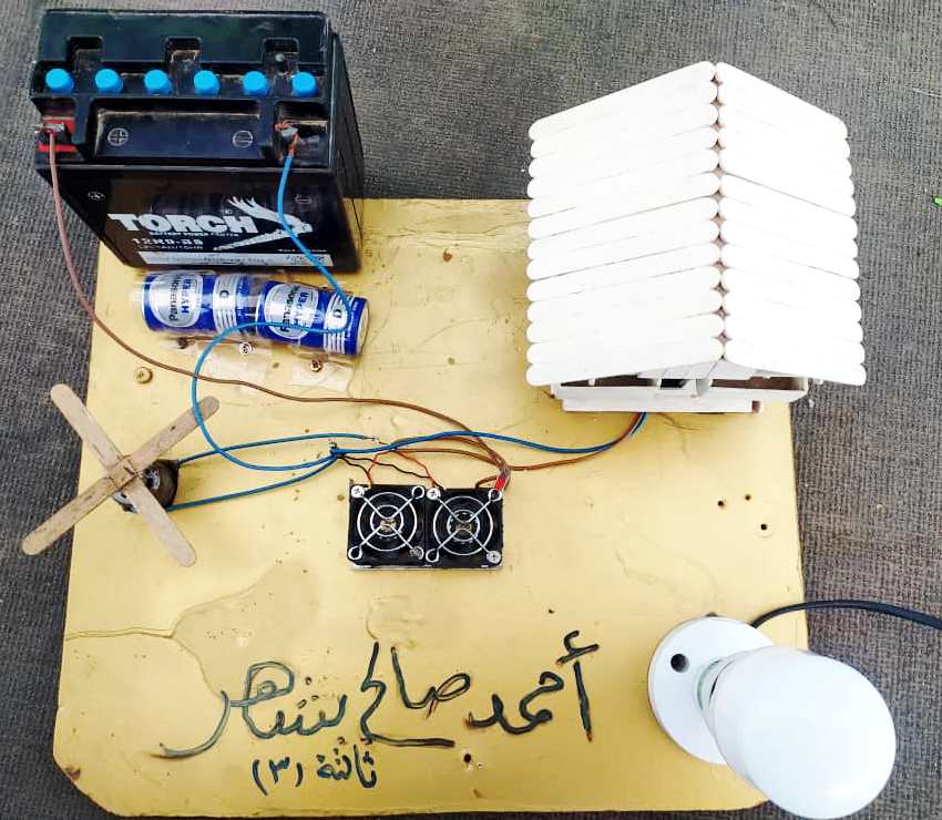 أحمد صالح بشهر من الصف الثالث وذلك بقيامه بعمل دائرة كهربائية ويأتي هذا التكريم من إدارة المدرسة للطالب أحمد تحفيزاً وتشجيعاً له متمنية له المزيد من الابداع والتميز .