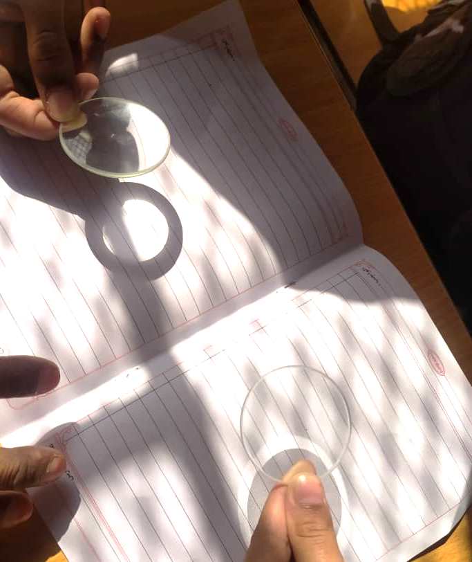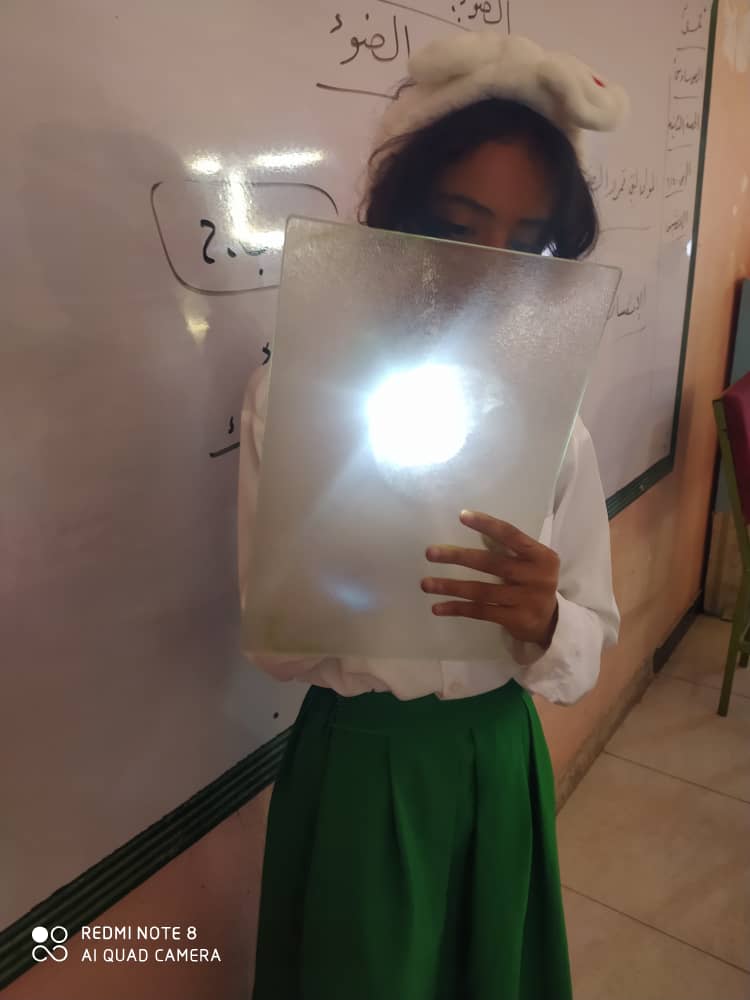أجرت معلمة العلوم بقسم ( 1-8 ) أساسي بفرع المكلا ( القصر ) رشيدة الهندي ثلاثة تطبيقات عملية في مادة العلوم لطالبات الصف السادس حيث كان التطبيق الأول عن كيفية مرور الضوء خلال الأجسام الشفافة والتطبيق الثاني فكان عن درس ألوان في الضوء والذي تكون عبر منشور ثلاثي من الزجاج أما التطبيق الثالث فكان عن درس العدسات .
