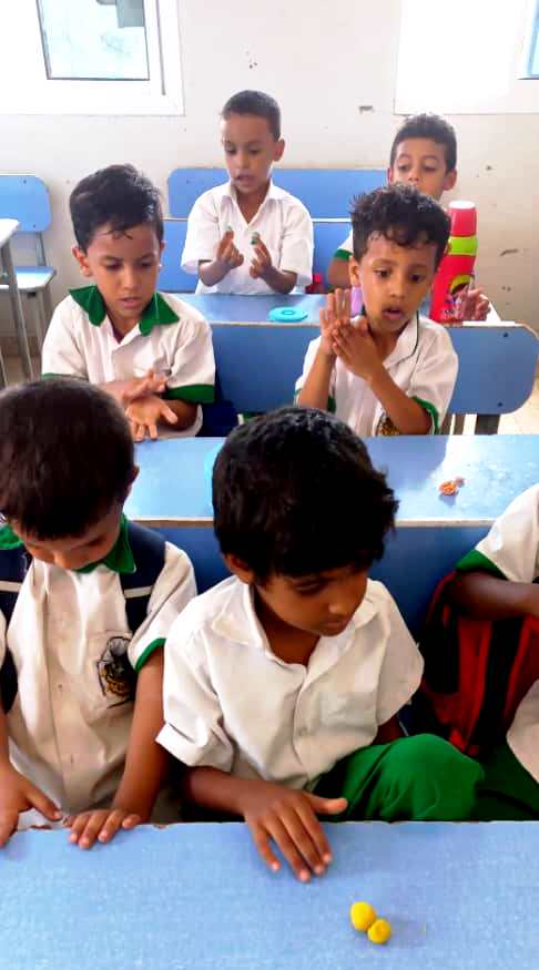 ضمن برنامج جماعات النشاط بقسم ( تمهيدي -أساسي ) بنات بفرع الضيافة أطفال المستوى التمهيدي يمارسون هواياتهم بعمل أشكال متنوعة من الورق والصلصال .