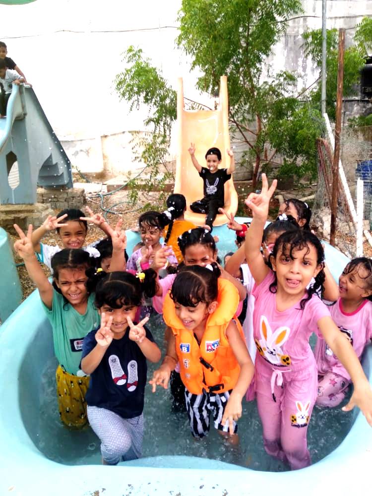 أقيم صباح يوم أمس الأحد بمدارس النور بفرع المكلا نشاطا ترفيهيا لأطفال الروضة تمثل في الاغتسال والسباحة في مسبح المدرسة.