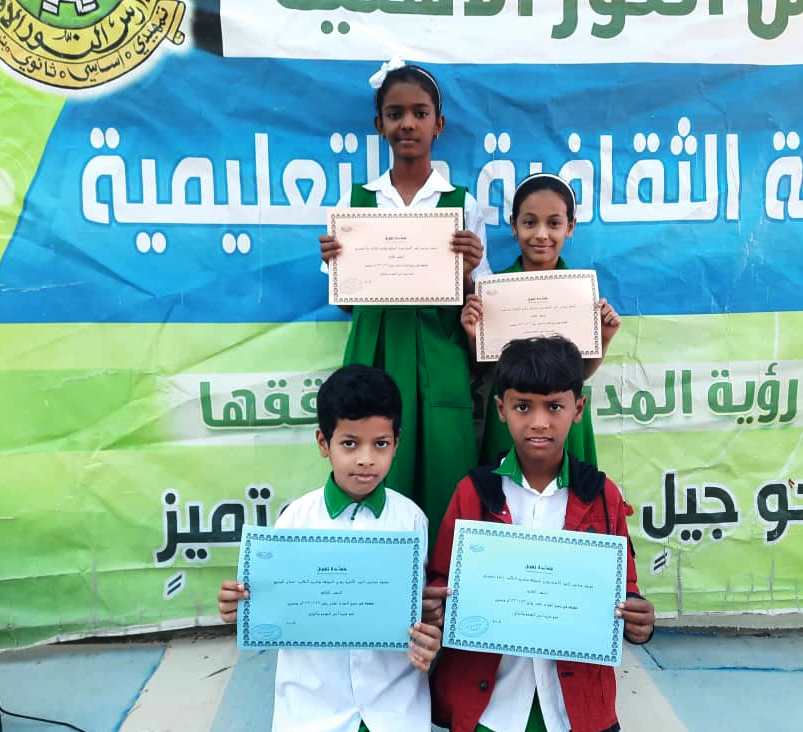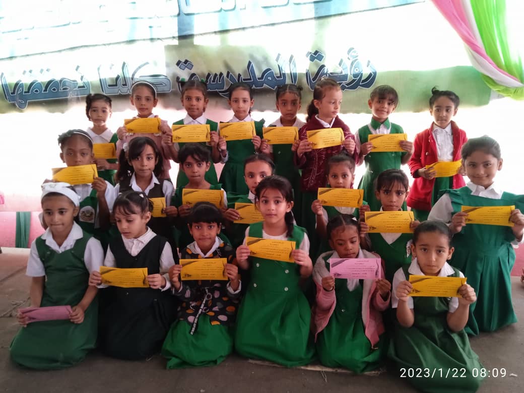 كرمت إدارة فرع المدرسة بالمكلا صباح يومنا هذا الأربعاء التلاميذ والتلميذات المتفوقين في اختبارات الشهر الأول من الفصل الثاني كما كرمت إدارة قسم ( تمهيدي – أساسي ) بنات بفرع الضيافة صباح يوم أمس الأول التلاميذ والتلميذات المتفوقين والمثاليين لنفس الشهر فيما كرمت إدارة قسم ( تمهيدي – أساسي ) بنات بفرع الديس صباح يوم الأحد من هذا الأسبوع التلاميذ والتلميذات المتفوقين والمثاليين والأمناء لنفس الشهر .