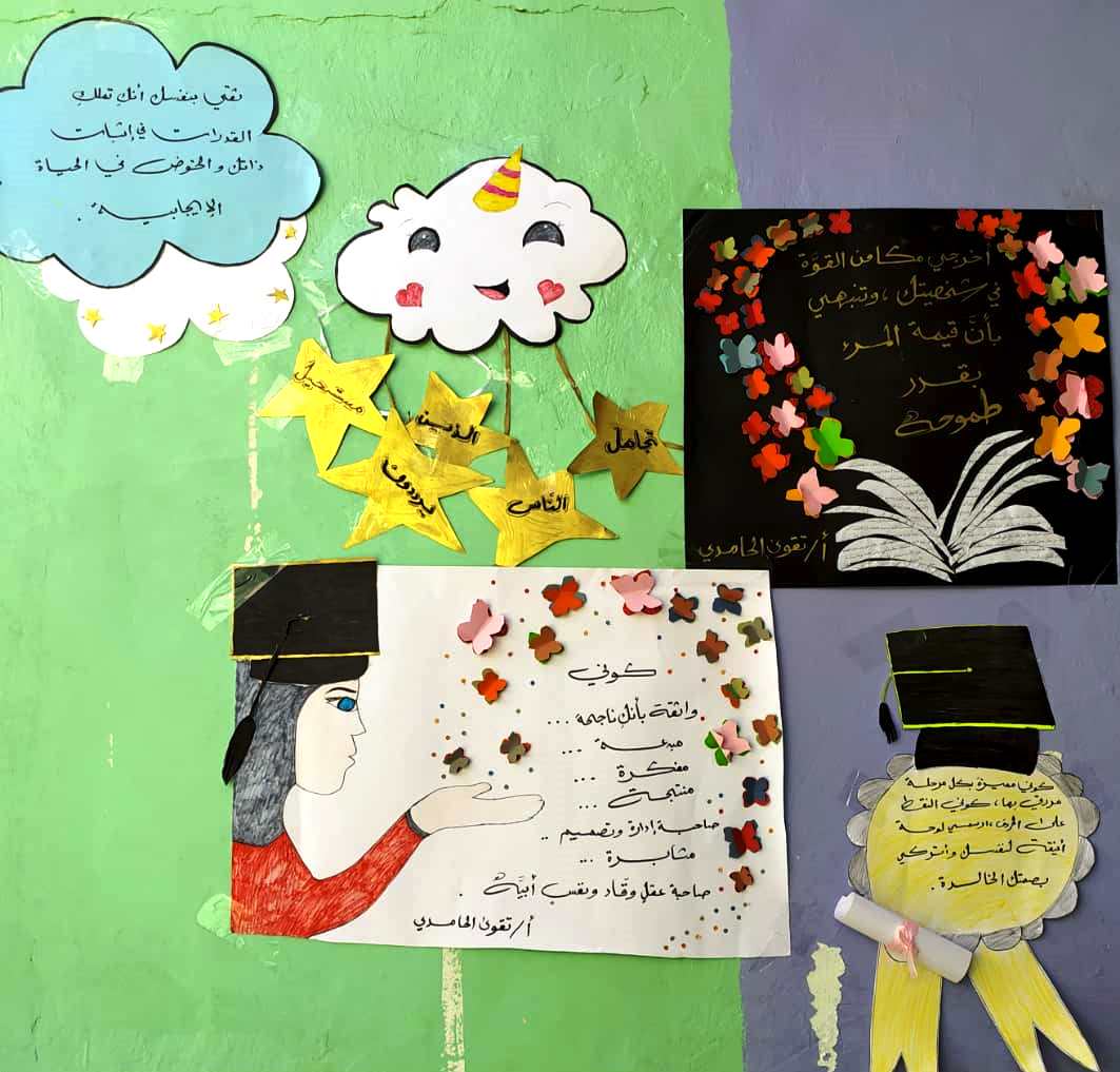 لما يحققه التوجيه والإرشاد للتلاميذ والتلميذات من تهذيب لسلوكهم ، ولما أخذته إدارة مدارس النور على نفسها من إعطاء أولوية في هذا الجانب ، فقد اختتم صباح يوم الخميس من الأسبوع الماضي فعاليات الأسبوع التوجيهي بفرع المدرسة بالمكلا ( القصر ) والذي حمل عنوان ( كوني متميزة ) للمستويات ( رابع – تاسع ) وقد اشتملت الفعالية على العديد من الفقرات والمحاضرات التوجيهية والملصقات التوعوية وقد لاقت تفاعلاً كبيراً من الجميع .