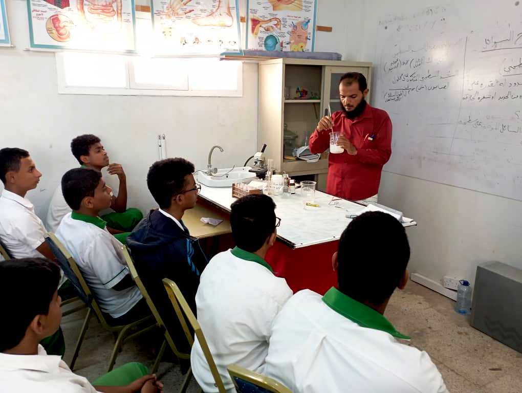 جانب من التجارب العلمية بالمختبر العلمي لمدارس النور الأهلية