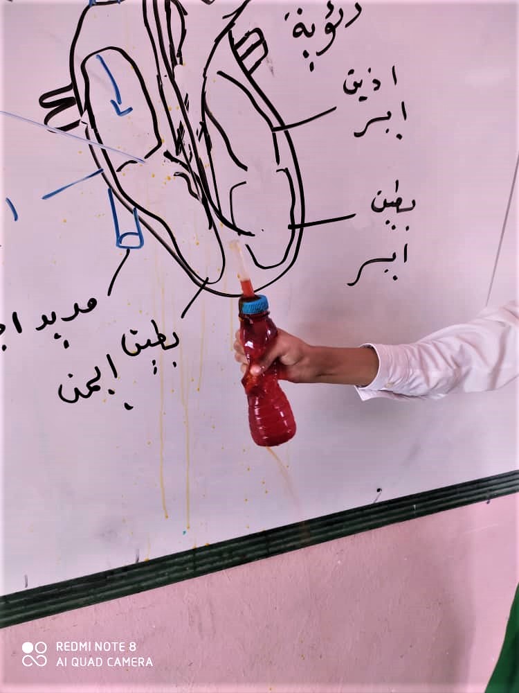 لما تحققه الوسيلة التعليمية من تشويق للتلميذات ولما له من دور في استيعابهم للمادة ، والذي تقوم به معلمات العلوم بمدارس النور ، فقد تم تنفيذ نشاط صفي في درس النبضة القلبية الواحدة ( عملية الانبساط والانقباض للقلب ) للصف السادس تحت اشراف معلمة المادة رشيدة الهندي وقد استفاد التلميذات من هذا النشاط الصفي .