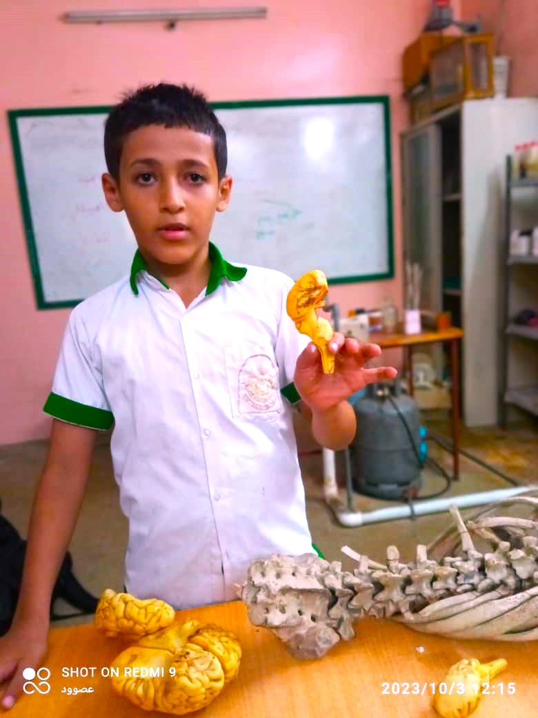 ضمن الحصص العملية والنظرية التي ينفذها معلمو مادة العلوم بفرع الديس أجرى أستاذ مادة العلوم مطلق النوب حصة عملية نظرية لتلاميذ الصف السادس (2) بمختبر المدرسة في درس ( أجزاء الجهاز العصبي ) وقد تفاعل التلاميذ أثناء سير الحصة العملية واعجبوا بما شاهدوه من أجزاء الجهاز العصبي الملموسة وقد استفاد التلاميذ من هذه الحصة العملية .