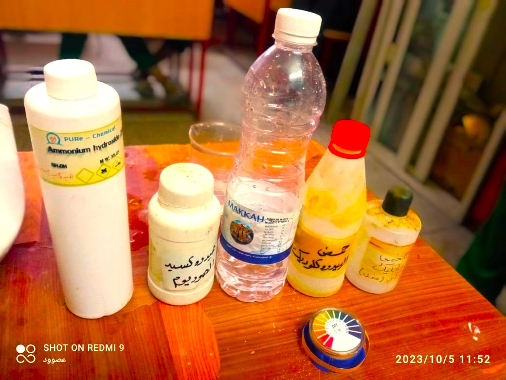 لما للتجارب العلمية من تشويق للتلاميذ ولما له من دور في استيعابهم للمادة فقد أجريت تجربة علمية بمختبر المدرسة بفرع الديس في مادة العلوم لتلاميذ الصف التاسع ( 2 ) في درس قياس قوة الحموض والقواعد باستخدام الكاشف العالمي ( PH ) تحت إشراف معلم المادة الأستاذ مطلق النوب وقد استفاد التلاميذ من هذه التجربة .