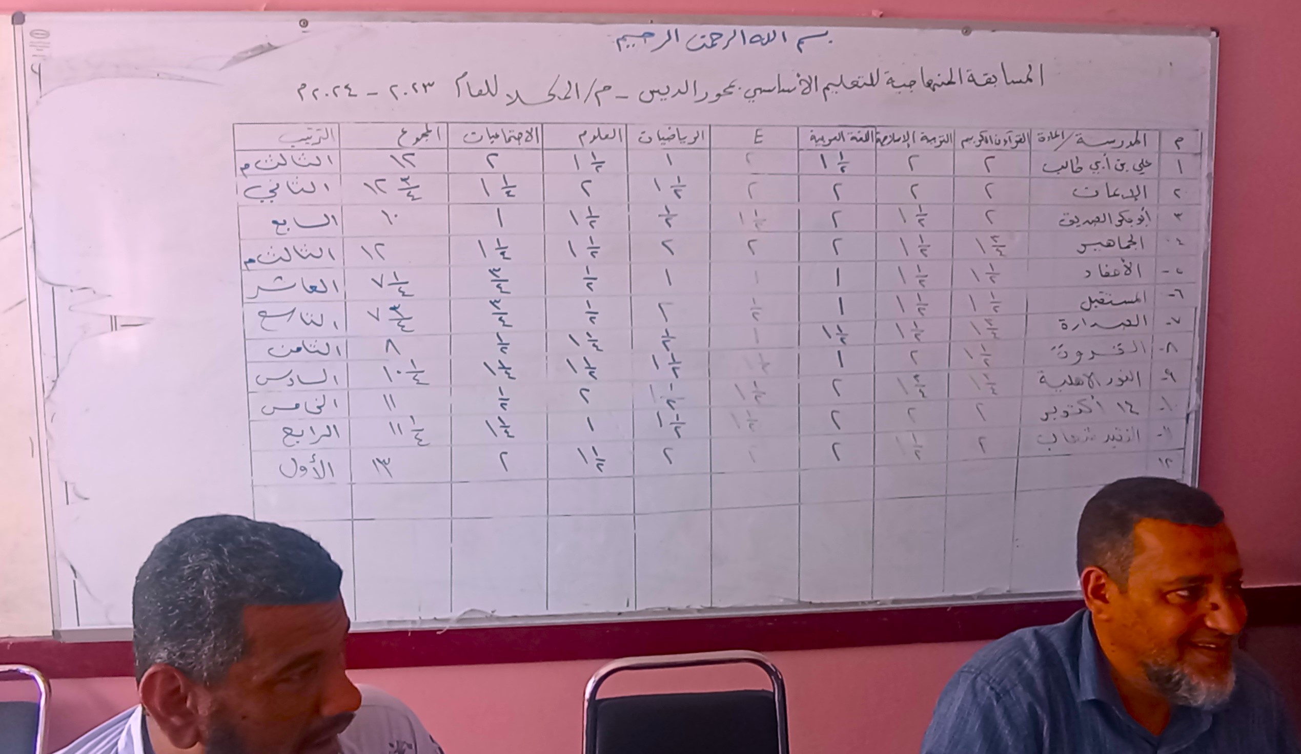 حصدت مدارس النور الأهلية بالديس على المركز الخامس من بين إحدى عشر مدرسة حكومية وأهلية في المسابقة المنهجية ( المستوى التاسع ) محور الديس والتي احتضنته مدرسة الإيمان صباح يوم أمس الأربعاء وتأتي هذه المسابقة ضمن برنامج النشاطات اللاصفية التي يقيمها مكتب التربية والتعليم بالمديرية للفصل الثاني من العام الجاري وقد شهدت المسابقة تنافساً شديداً بين المدارس المشاركة وقد مثل مدرستنا في هذه المسابقة كل من التلاميذ صالح عوض بادويحه - عبدالرحمن فهد العمودي – حسن صلاح العمودي – محمد أحمد الحسني وأحمد لطفي يسر .