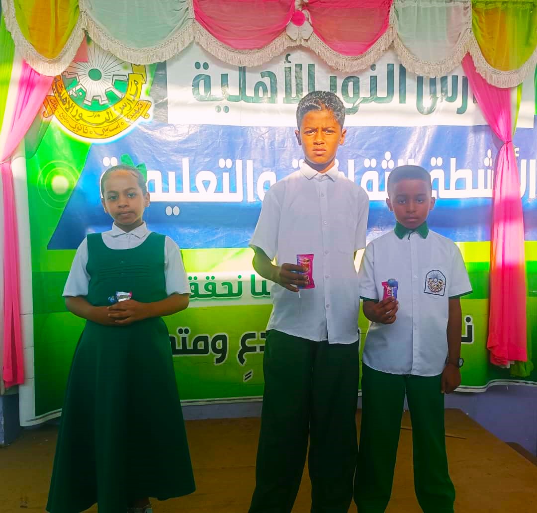 تسعى مدارس النور إلى تحفيز تلاميذها وطلابها وخلق روح التنافس الشريف بينهم وذلك من خلال تكريم التميزين في كل شهر فقد كرمت إدارة مدارس النور الأهلية بفرع المكلا ( القصر ) صباح يوم أمس التلاميذ والتلميذات الأمناء خلال شهر يناير كما تم يوم الخميس من الأسبوع الماضي تكريم الصف الأول ( 2 ) وذلك لتقديمه أفضل طابور صباحي وتكريم الصف الثاني ( 3 ) لتميزه في النظافة خلال شهر يناير المنصرم وفي وقت سابق كرمت إدارة المدرسة التلميذ صالح عبدالله باوزير لتميزه في حفظ سورة النبأ وتكريم الفائزين في مسابقة الخط للمستويات ( 1 – 4 ) وهم التلميذان خالد محمد مخير وسالم عبدالله غزي والتلميذة رفيف رأفت بن كروم .