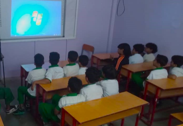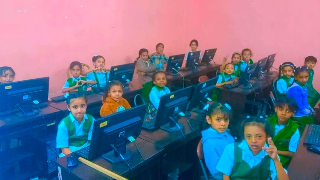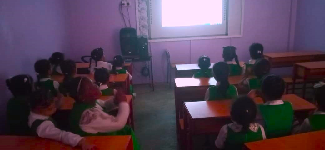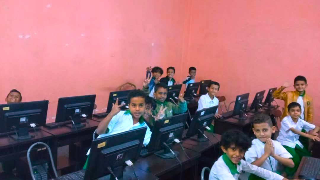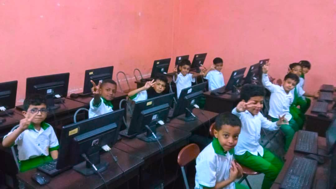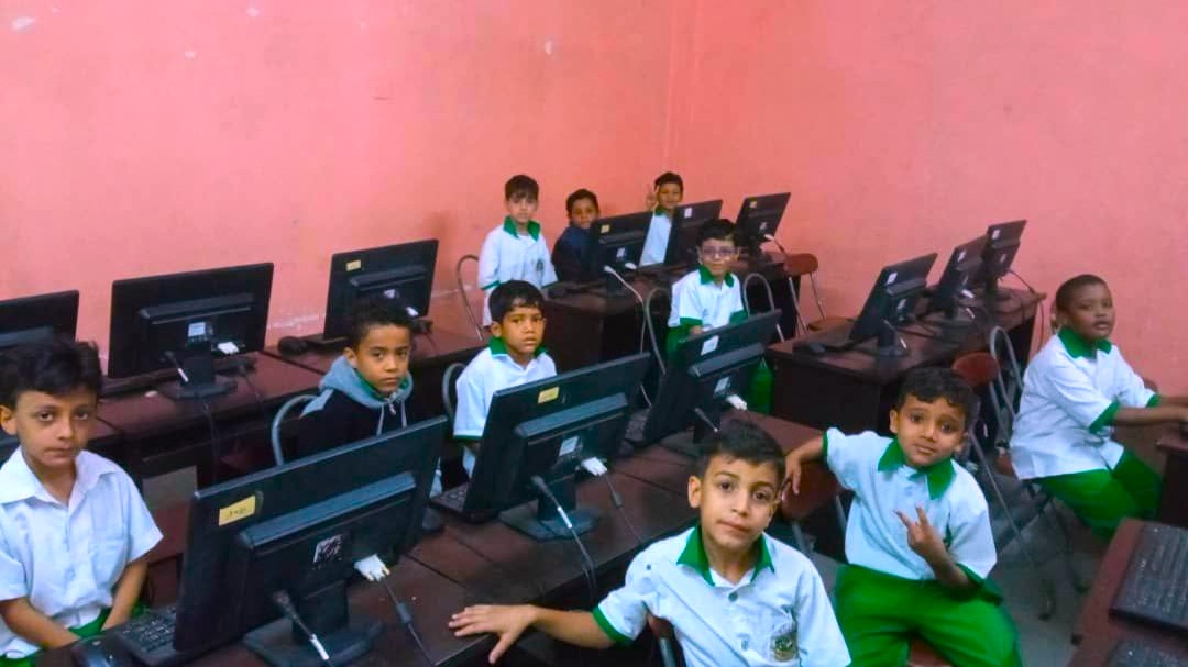 جانب من تلاميذ المستوى الأول والمستوى الثاني بنين وبنات والمستوى الثالث بنين في غرفة الحاسوب لتعريفهم بمكونات الحاسوب وجانب آخر من تطبيق عملي لتلاميذ الصف الأول والثاني بنات والصف الرابع بنين على السبورة الذكية لدرس الرسام والدفتر تحت إشراف معلمة الحاسوب الأستاذة ريم باشراحيل .