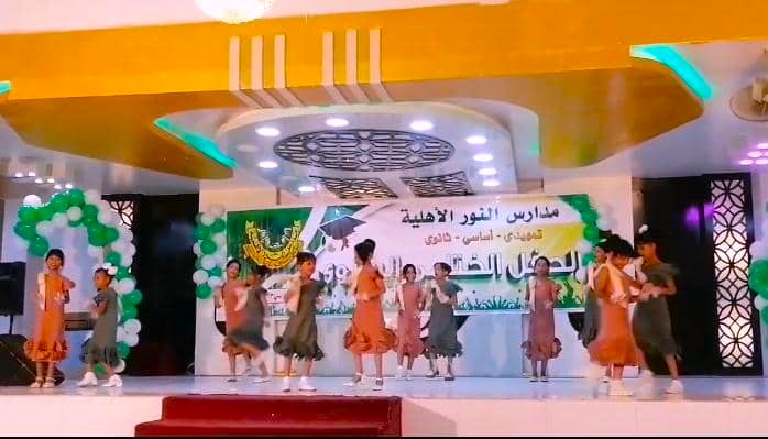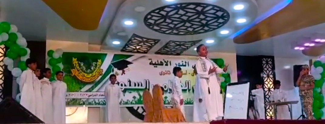 في أجواء فرائحية وسعادة غمرت قلوب تلاميذ وتلميذات وطالبات وأولياء أمورهم اختتمت مدارس النور الأهلية فرع المكلا ( القصر ) العام الدراسي 2023/2024م بحفل ختامي سنوي بقاعة المكلا مول ( الهايبر ) كرمت فيها أوائل التلاميذ والتلميذات والطالبات وقد شهد الحفل العديد من الفقرات الانشادية والمشاهد الهادفة جسدها تلاميذ وتلميذات المدرسة بقالب إبداعي ومتميز كما شهد الحفل تكريم تلميذات المستوى التاسع بجميع فروع المدرسة للعام المنصرم 2022/2023م .