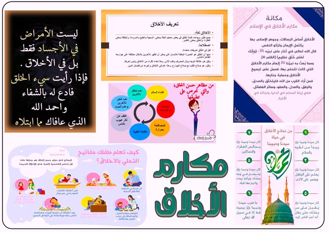 جاء عنوان الأسبوع للفئات الصغرى "حفظ اللسان واليد"، فيما كان عنوان الفعاليات للفئات الكبرى "أخلاقنا تميزنا عن غيرنا"، وذلك ضمن جهود إدارة المدرسة في تعزيز غرس القيم الأخلاقية والسلوكيات الإيجابية لدى التلاميذ والطالبات .