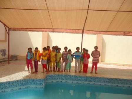 وقد قامت الطالبات بممارسة رياضة السباحة .